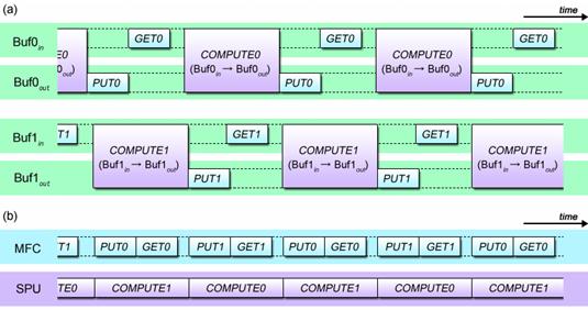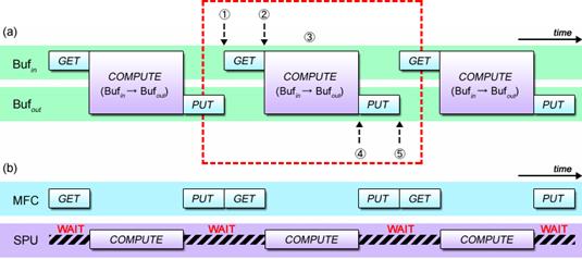 For most applications, DMA transfer accounts for a large percentage of the time required for processing by the SPE program, which is to say, improving efficiency of DMA transfer is a significant means of making applications run faster. In this section, therefore, we will introduce “double buffering”, a technique for improving the efficiency of DMA transfer, while maximizing SPE performance.